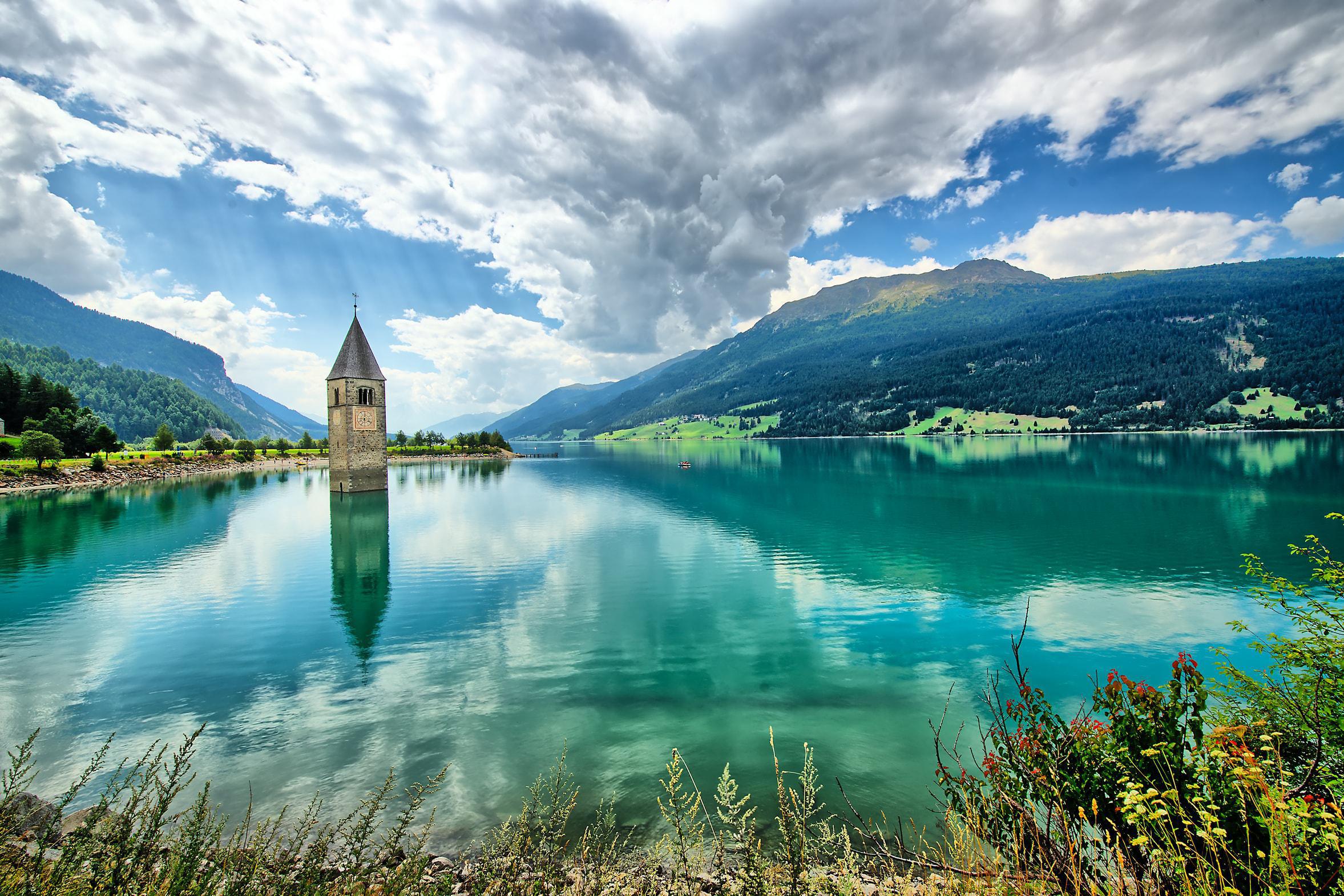 Lake Resia is striking alpine lake famous for its submerged bell tower. With few tourist around, you can enjoy the serene waters and surrounding mountains in peace.